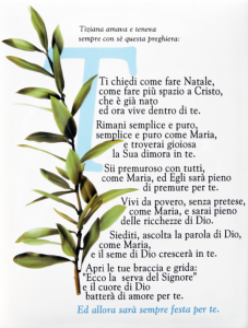 Tra le varie cose estrassi un foglietto sgualcito, lo dispiegai e per la prima volta ne lessi con i miei amici il contenuto: era una preghiera che Tiziana aveva trovato un anno prima, a Natale del 1991 nel Duomo di Asiago, dove andavamo con tutta la famiglia, per qualche giorno di riposo.